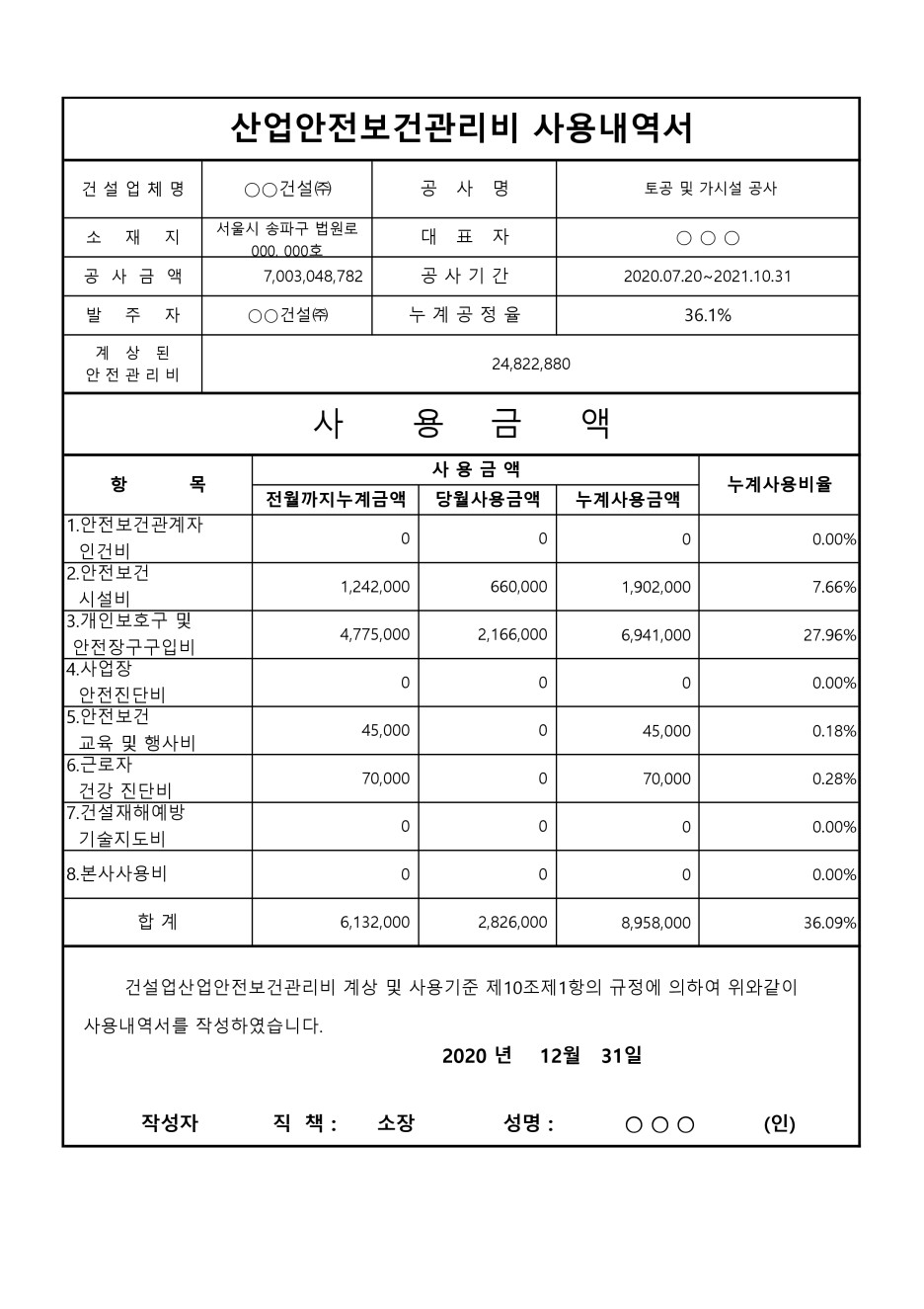 ▶ 안전관리비는 법에 정한 법정사용비용이다. 점검 및 감독시 증빙관리 미흡으로 아주 큰 문제가 될 수 있다.